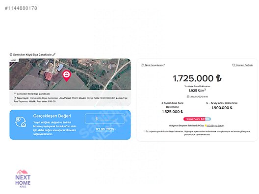 Next Home'dan Biga'da 896 m2 İmarlı Arsa
